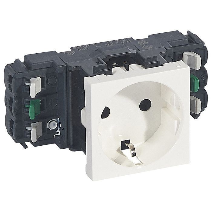 Розетка Legrand MOSAIC, скрытый монтаж, с заземлением, белый, 077401